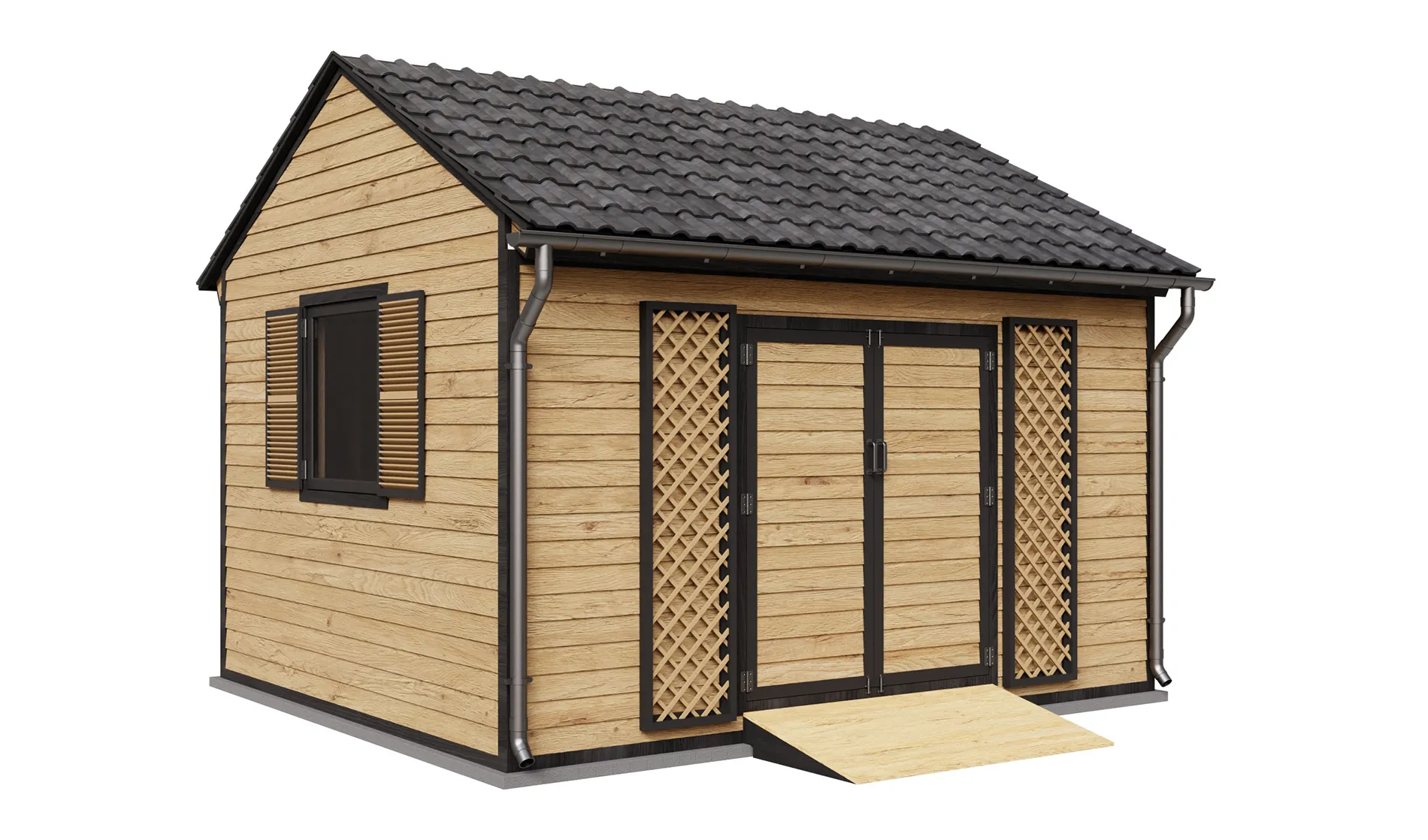 A sturdy ramp is attached to the 64-inch wide door at the center of the shed to allow easy movement of heavy tools in and out. Two 40-inch expansive windows on opposite sides allow adequate light to flow in the shed while serving as ventilation. You can rest assured that your garden supplies will remain in pristine conditions, even after prolonged storage.