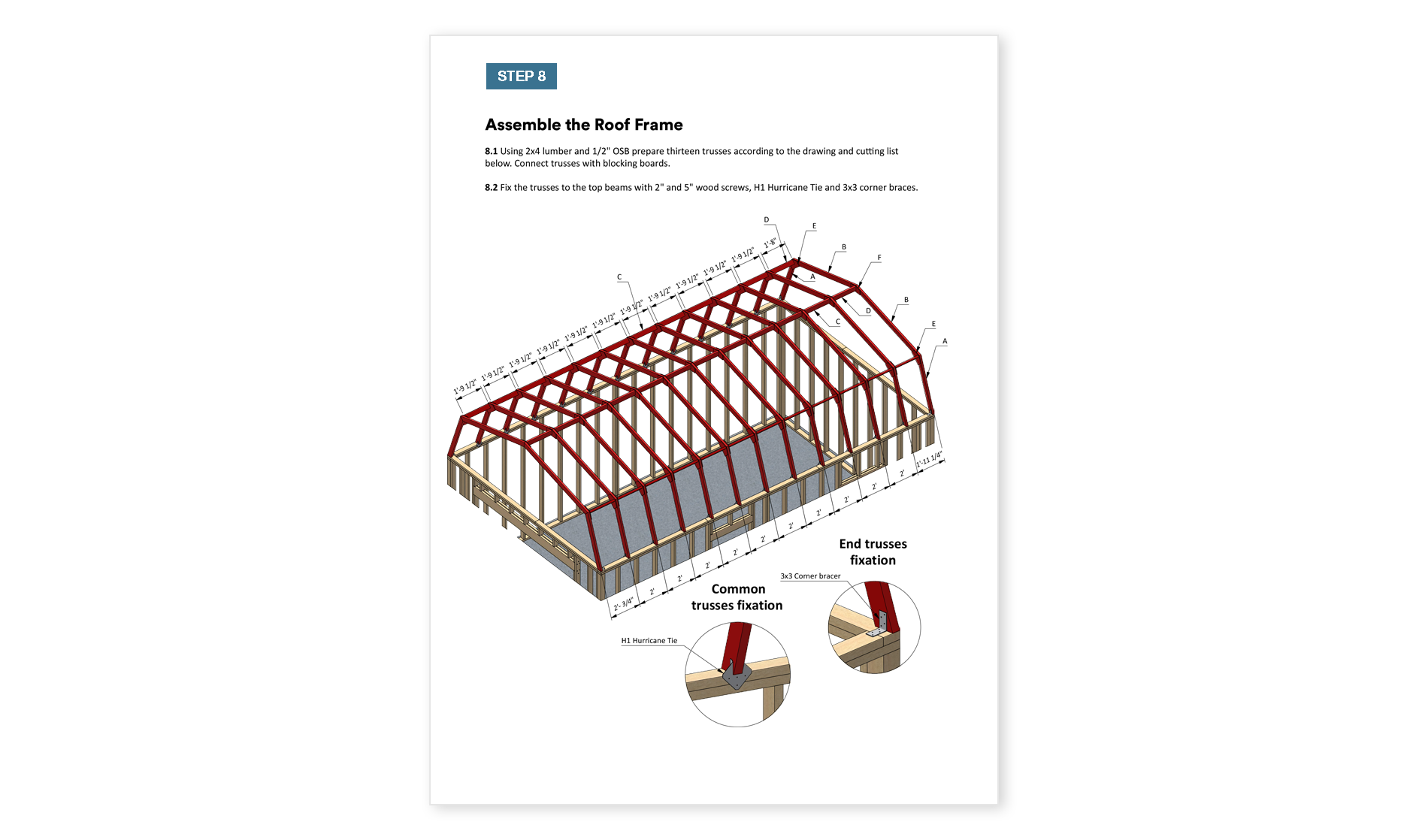 Build your 14×24-foot gambrel-style shed or garage with this complete DIY plan.