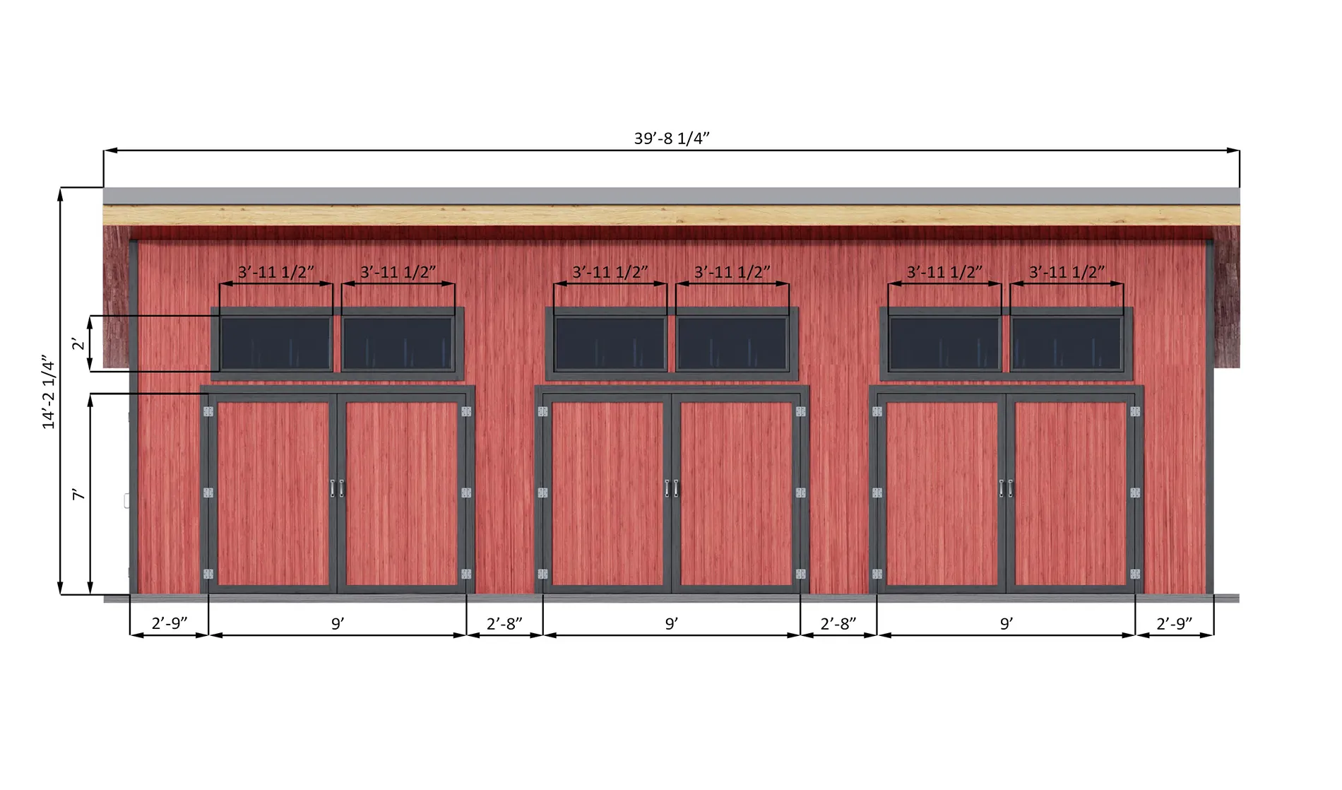 This architecturally inspired 26×38 garage is designed to combine striking modern aesthetics with serious everyday functionality. The bold sliding front doors provide seamless access for vehicles of all sizes, while a well-placed side entry door ensures effortless day-to-day use. A carefully aligned row of upper windows fills the interior with natural light, creating a bright, open atmosphere that feels more like a high-end workshop than a traditional garage.