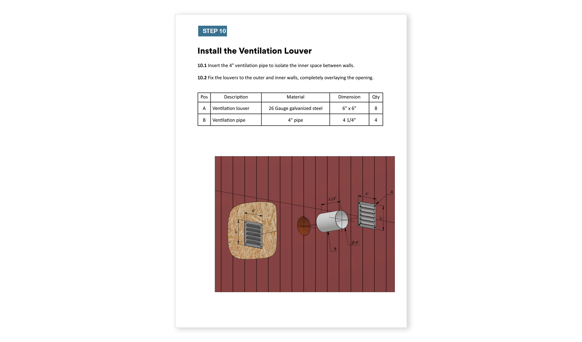 - Diagrams for installing vents and entry ramp